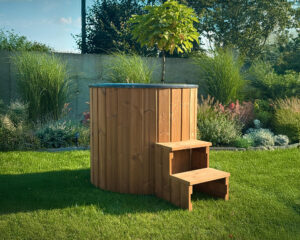 Placed in your garden, the cooling tub is an excellent complement to a sauna or a traditional outdoor hot tub. Thanks to its compact dimensions and natural appearance, it blends beautifully into both modern and rustic settings