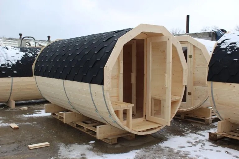 The sauna is already assembled before shipping. Extra charge options: painting with varnish, installation of the stove, glazing.