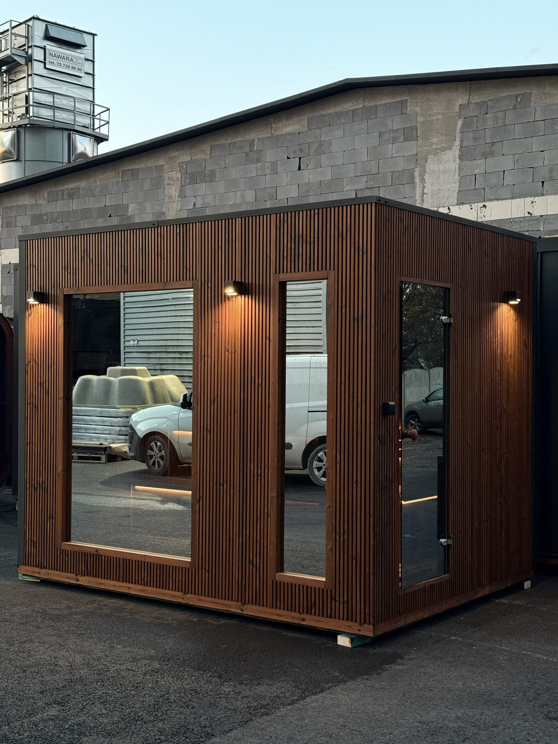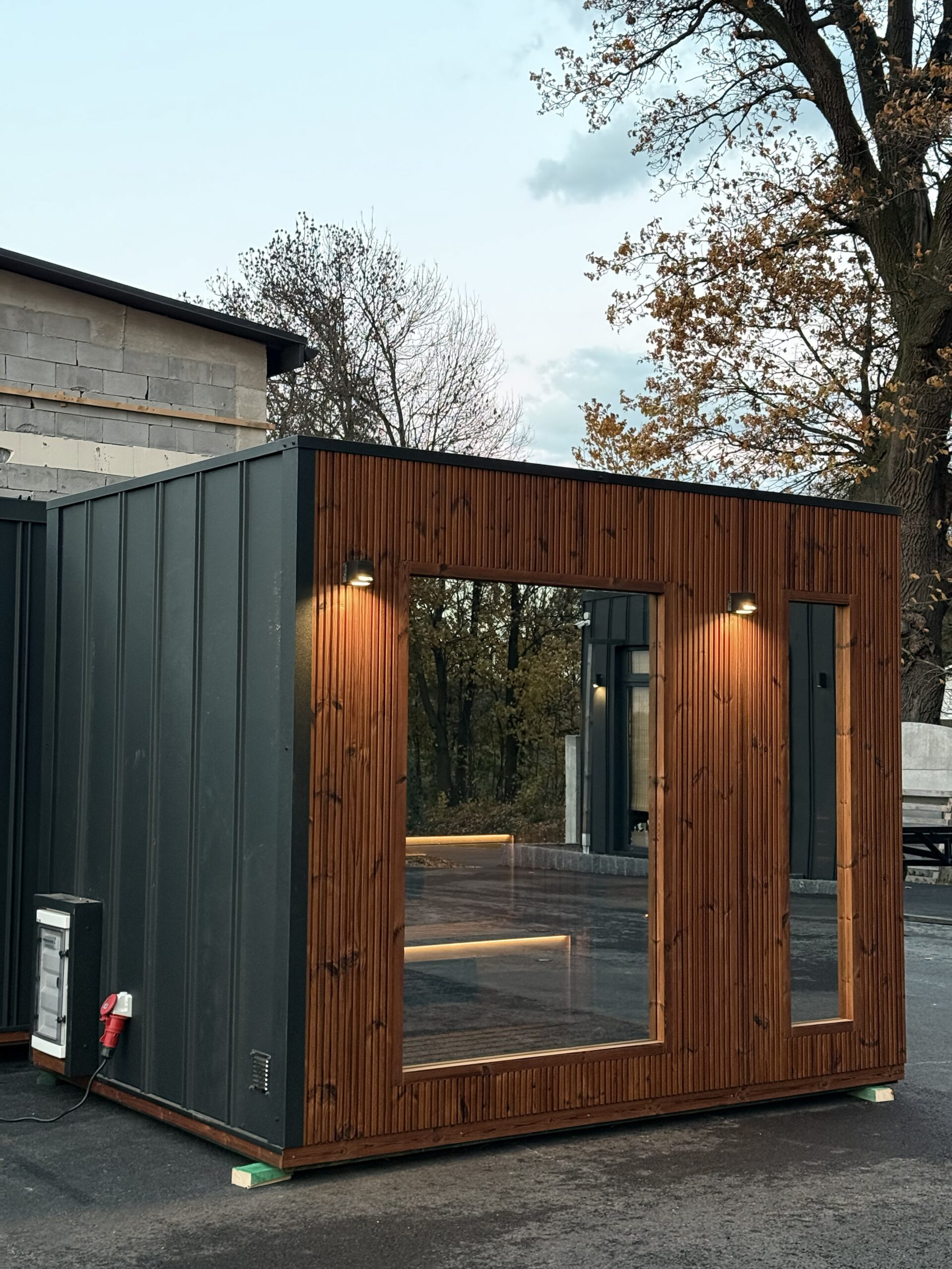 Całość prezentuje się niezwykle elegancko: minimalistyczna architektura, wysokiej jakości materiały, starannie dobrane detale i harmonijne połączenie z otoczeniem sprawiają, że przestrzeń relaksu nabrała wyjątkowego charakteru. Sauna działa bez zarzutu, jacuzzi zapewnia pełen komfort, a balia z zimną wodą idealnie dopełnia rytuał regeneracji.