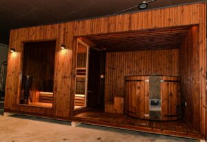 Audio system in the sauna – Built-in speakers resistant to high temperatures and humidity, providing clear sound inside the cabin.