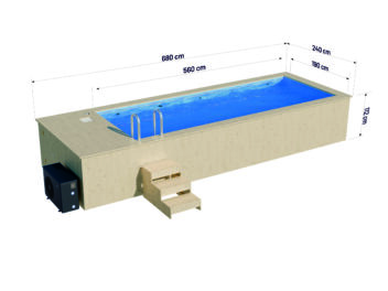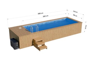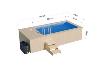 Wooden swimming pool 4.8 x 2.3 m with a pool heater and polypropylene liner