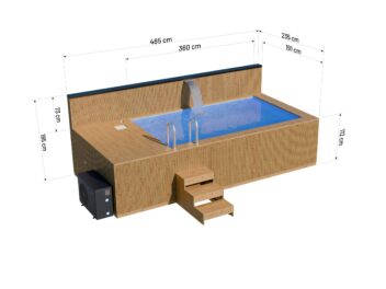 Wizualizacja basenu o wymiarach 4.8 x 2.3 m z piecem i wkładem, model Thermo, widok z perspektywy.